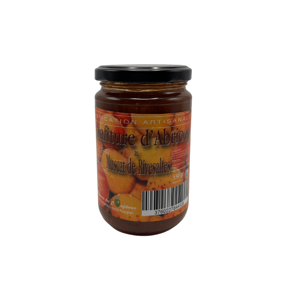 Confiture d’abricot au muscat de Rivesaltes, en pot de 330 g. Douce et parfumée, elle marie le fruit ensoleillé de l’abricot à l’élégance d’un vin doux naturel catalan