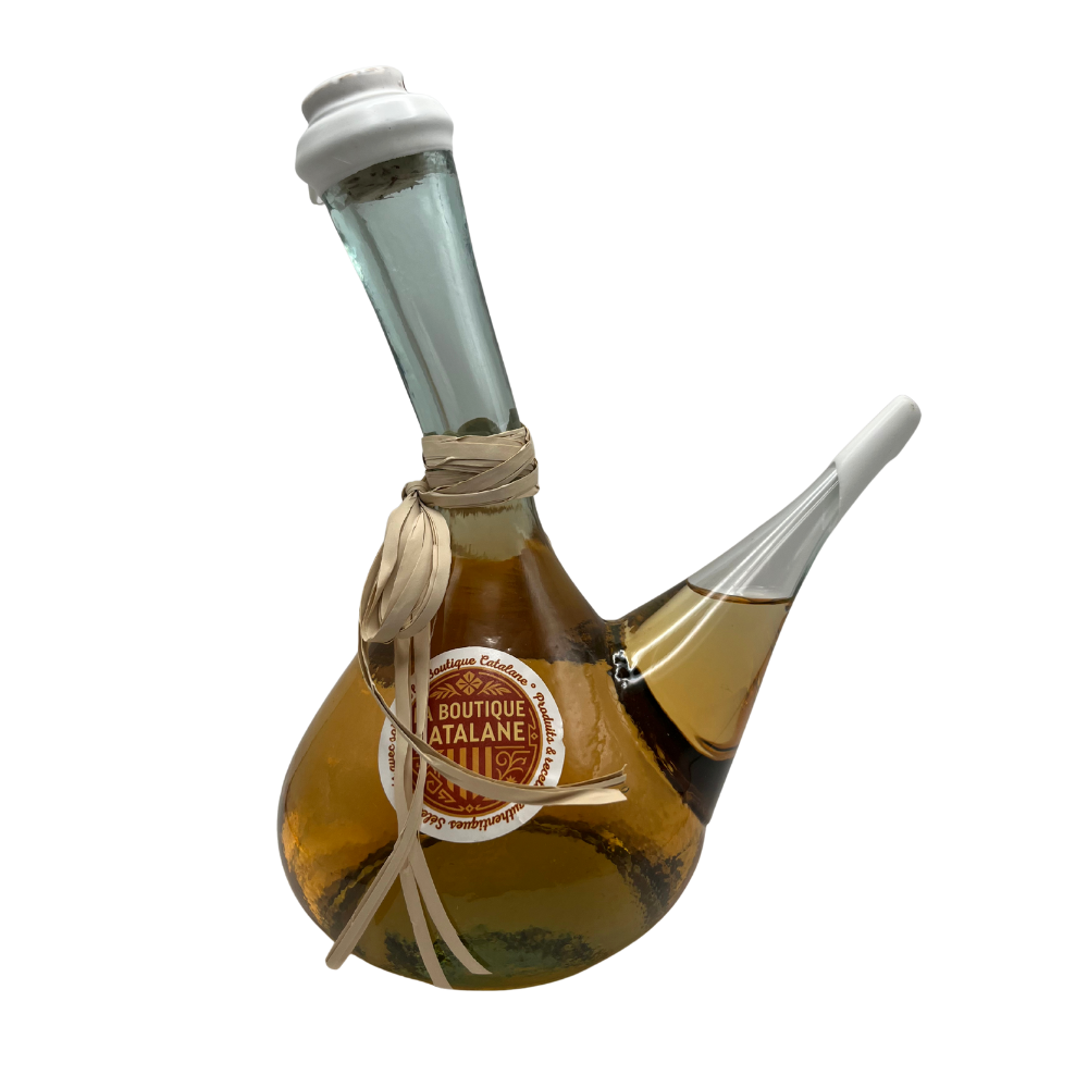 Le porron, emblème de la convivialité catalane, vous invite à partager ce muscat de manière festive et authentique, comme le veut la tradition.